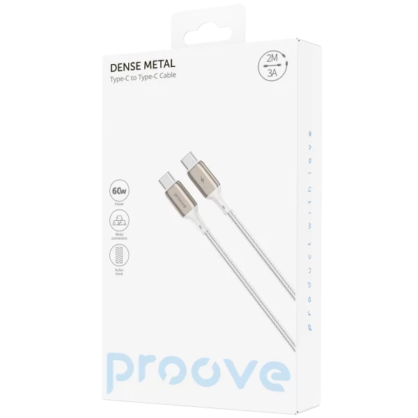 Kabllo karikimi Proove Dense Metal Type-C në Type-C, 60W, 2m, e bardhë
