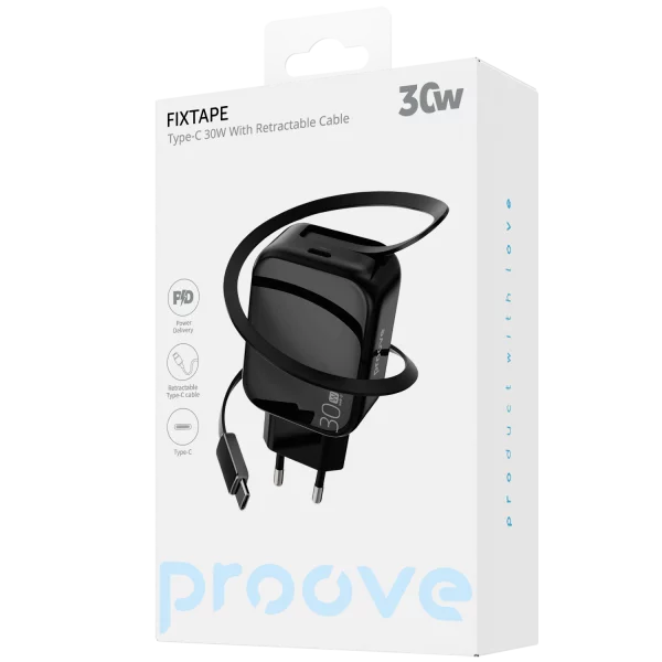 Karikuesi i murit Proove Fixtape 30W me kabllo të integruar Type-C është zgjidhje praktike për karikim të shpejtë dhe të sigurt të pajisjeve moderne. Me fuqi maksimale 30W dhe mbështetje për tensione të ndryshme, siguron karikim stabil për smartphone, tablet dhe pajisje të tjera me USB-C. Dizajni kompakt dhe materiali rezistent ndaj zjarrit e bëjnë të përshtatshëm për përdorim në shtëpi ose gjatë udhëtimit.