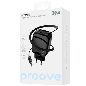 Karikues muri Proove Fixtape me kabllo të integruar Type-C, 30W, i zi