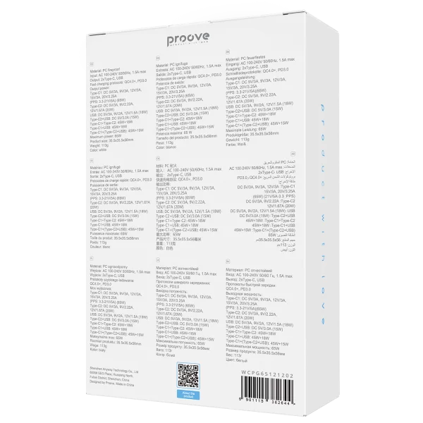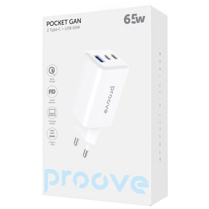 Karikuesi i murit Proove Pocket 65W është zgjidhje e fuqishme dhe kompakte për karikim të shpejtë të disa pajisjeve njëkohësisht. Me mbështetje për protokollet QC4.0 dhe PD3.0 si dhe teknologjinë PPS, siguron shpërndarje inteligjente të energjisë për smartphone, tablet dhe laptop me USB-C. Falë dy porteve Type-C dhe një porte USB, ofron fleksibilitet maksimal në përdorim të përditshëm ose gjatë udhëtimeve.