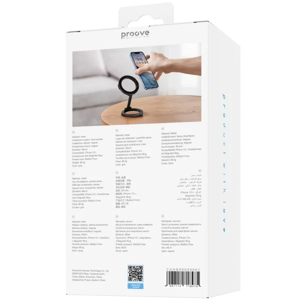 Mbajtëse magnetike për telefon Proove Hidden, për sipërfaqe të sheshta, gri