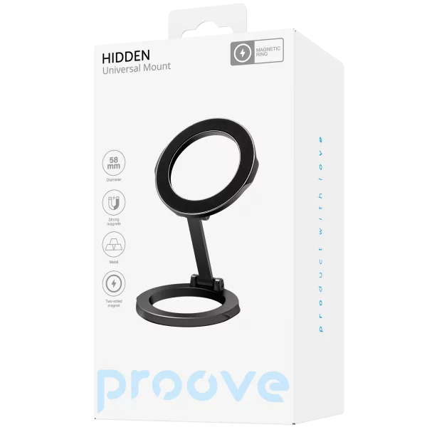 Mbajtësja magnetike Proove Hidden është zgjidhje kompakte për vendosjen e telefonit në sipërfaqe të sheshta si paneli i makinës ose tavolina. Me trup metalik dhe sistem magnetik të integruar, ofron mbajtje të qëndrueshme dhe akses të shpejtë në pajisje. Dizajni minimalist përshtatet lehtësisht me ambiente moderne.
