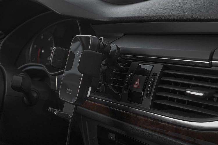 Mbajtëse për telefon me karikim wireless Proove Triple Clamp, 15W, për ventilim ose panel, e zezë