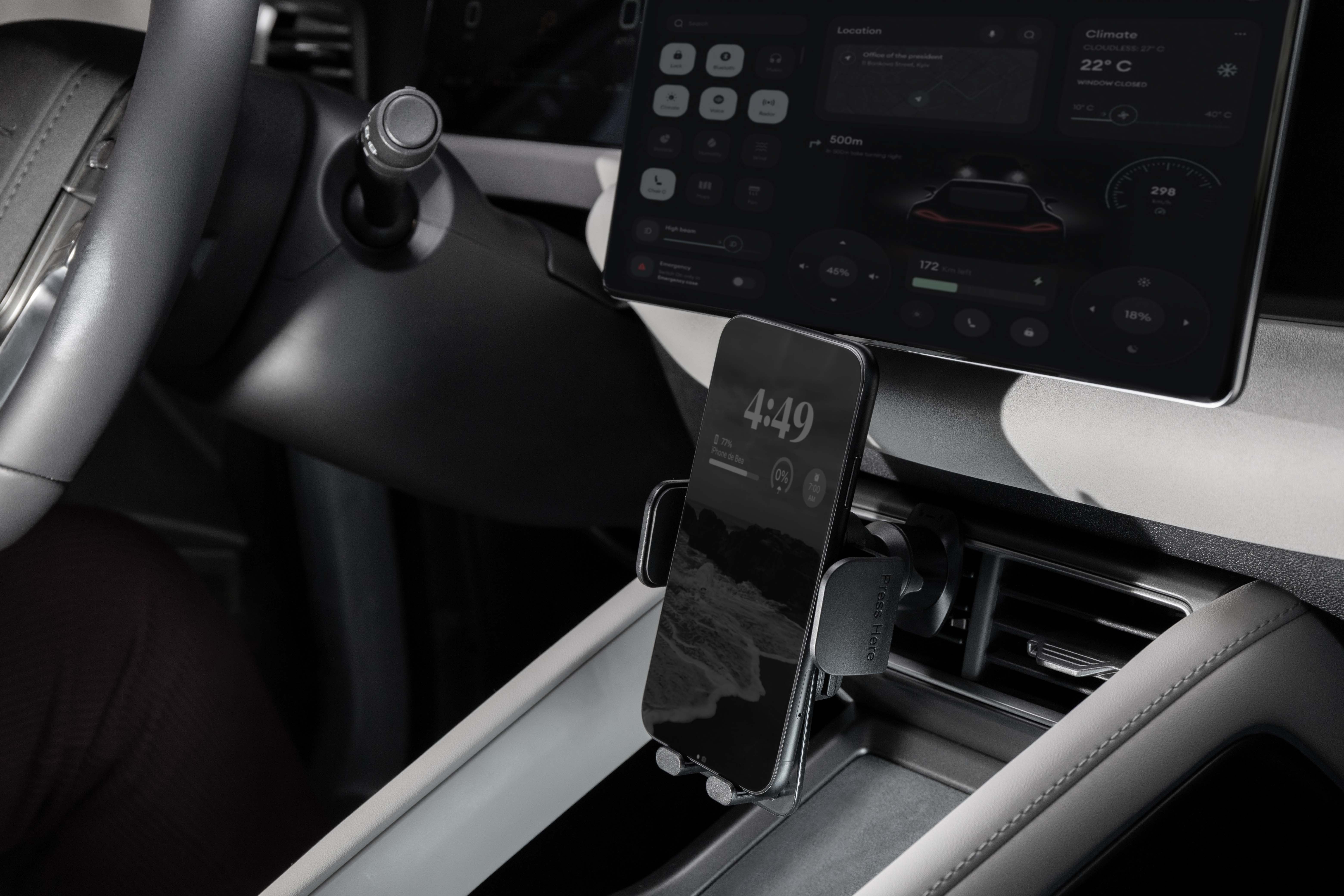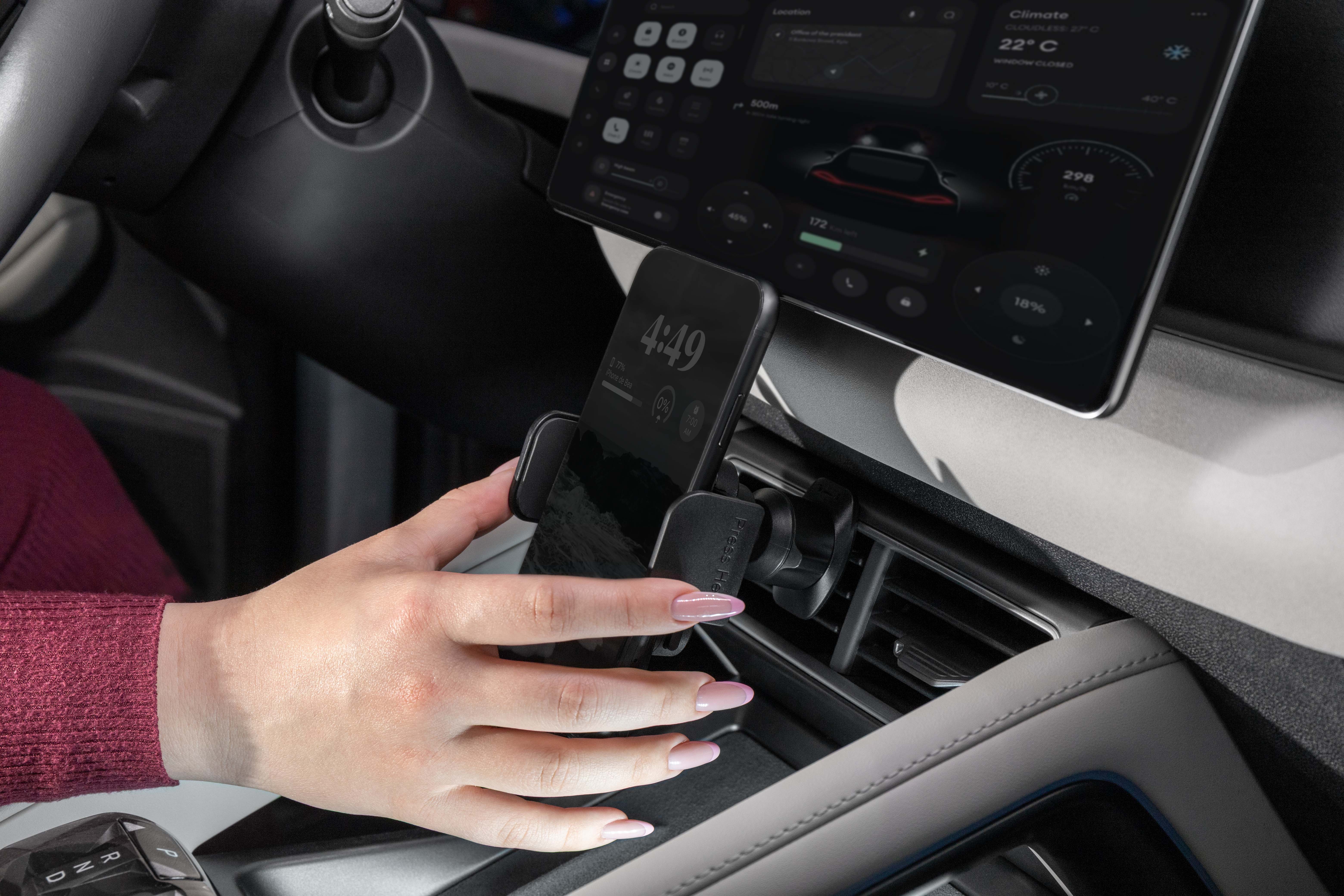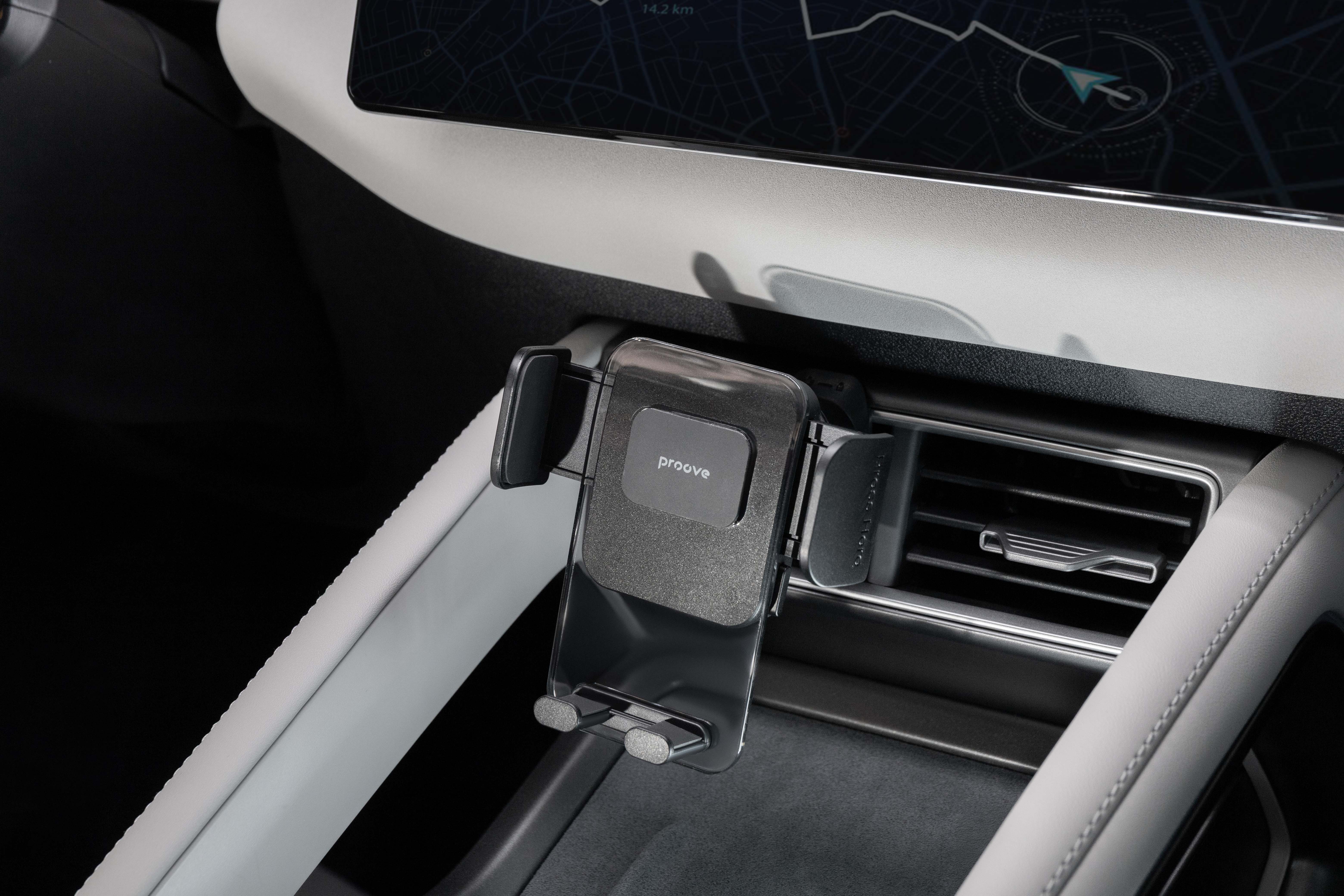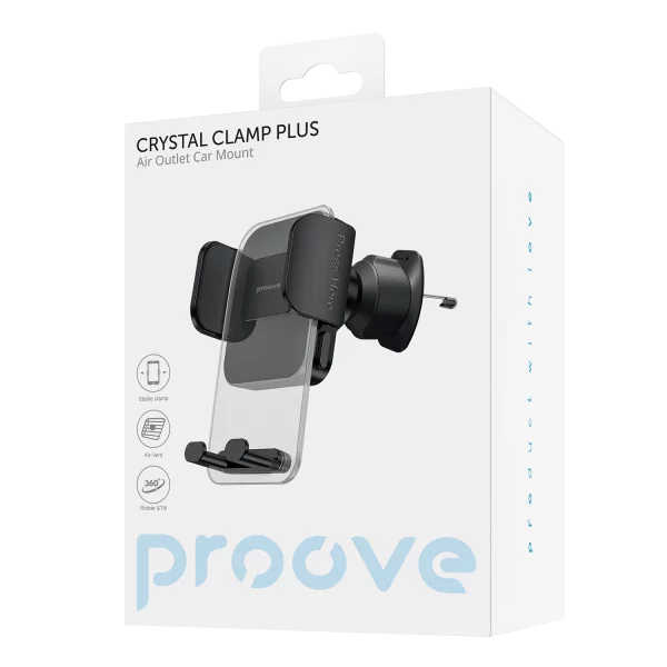 Mbajtësja Proove Crystal Clamp është projektuar për montim në ventilimin e makinës, duke ofruar stabilitet dhe qasje të shpejtë në smartphone gjatë drejtimit. E përshtatshme për pajisje me madhësi nga 4.7″ deri në 6.9″, siguron mbajtje të qëndrueshme falë kapëses mekanike. Dizajni modern dhe materialet cilësore e bëjnë një aksesor praktik për përdorim të përditshëm.