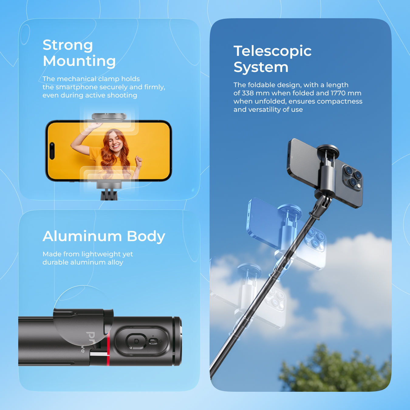 Gjatësi maksimale 177 cm për foto në grup dhe panorama