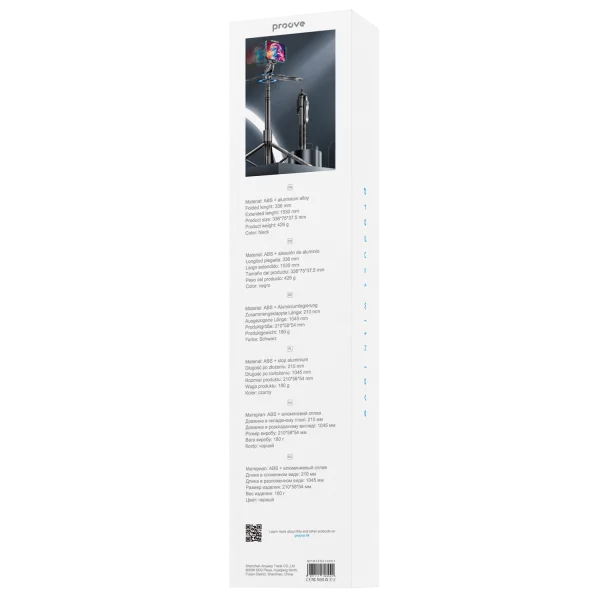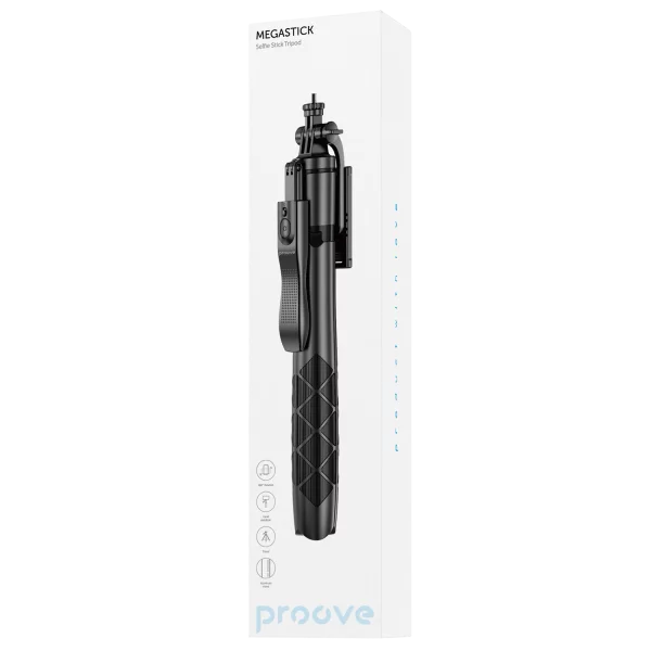 Proove MegaStick është tripod praktik dhe i lehtë, i projektuar për fotografi dhe video gjatë udhëtimeve ose përdorimit të përditshëm. Me gjatësi deri në 153 cm kur hapet plotësisht dhe dizajn kompakt kur paloset, ofron balancë mes portabilitetit dhe stabilitetit. Struktura prej alumini dhe ABS siguron qëndrueshmëri në kushte të ndryshme përdorimi.