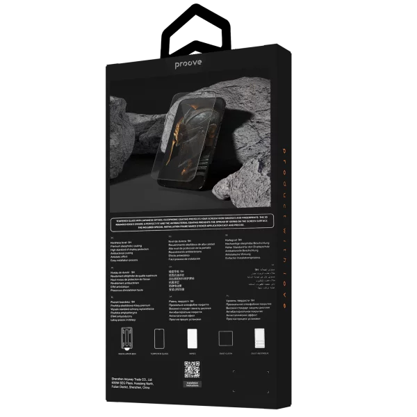 Xham mbrojtës Proove Achilles Installation Box për iPhone 15 Pro, 9H, i zi
